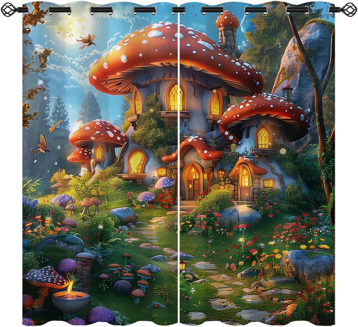 These print curtains are perfect for Living room, bedroom, kids room, kitchen, yard, patio, parlor, sliding door with Forest Fairy Tales,Fantasy Cute Mushroom Botanical pattern.- Unique design:· Save energy costs by insulating against heat and cold.· Reduce noises from busy streets and high-traffic areas.· Protect furniture from sun damage and fading.· Provides complete privacy when needed· Perfect for any bedroom, office kids room and living room.- Package Included:· Blackout window curtains 2 Pcs set ( two panels).- Material:· Our Blackout Curtain Liners are crafted from a durable soft and thick triple weaved blackout fabric which can block out sunlight and UV rays. The darker color of the fabric, the more light it can block.- Easy Care Instructions:· Machine washable in cold water· Do not bleach.· tumble dry on low· low temperature ironing- Notes:· For your curtains to be more perfect, please choose a size 5-10 Inch larger than the actual window width.· here may be slight differences in colors on different displays. If you have any questions about the product, please feel free to contact us.